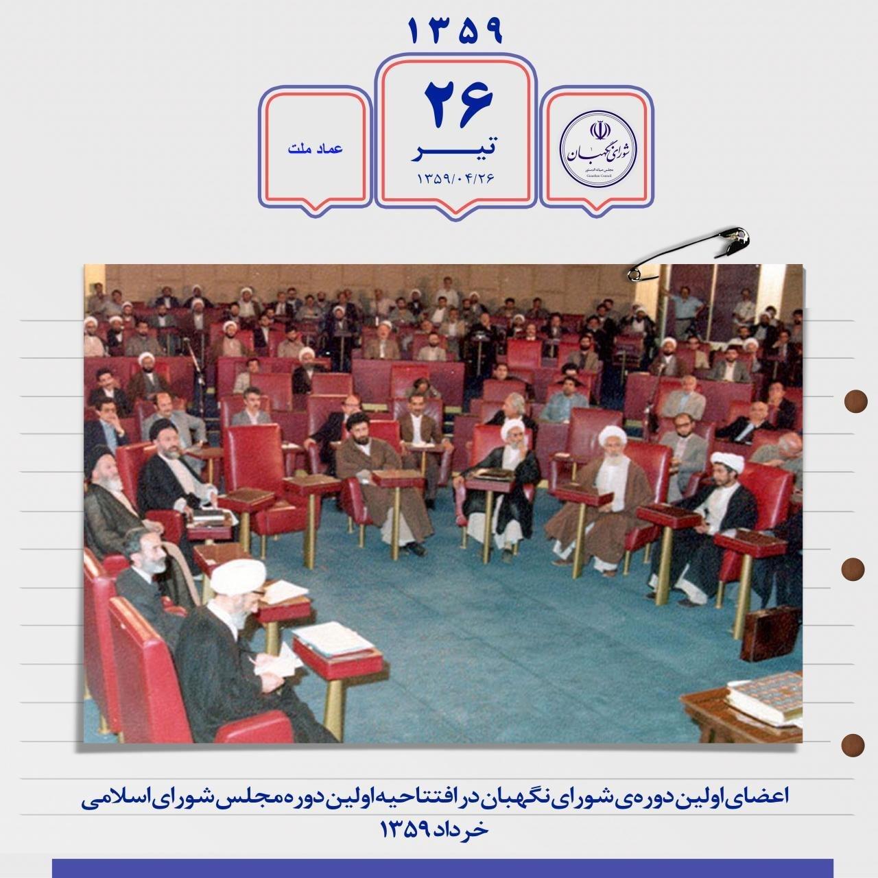 حضور اعضای نخستین دوره شورای نگهبان در مراسم افتتاحیه مجلس اول - خرداد ۱۳۵۹