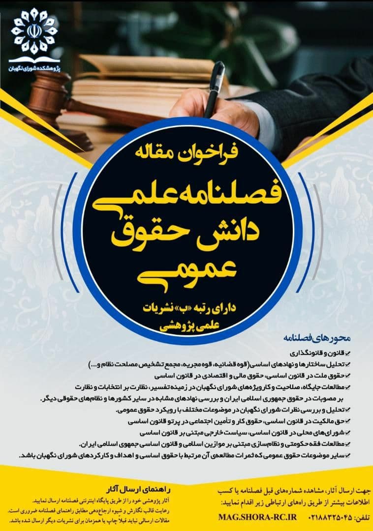 به گزارش پایگاه اطلاع رسانی شورای نگهبان، فصلنامه دانش حقوق عمومی «دارای رتبه ب نشریات علمی پژوهشی وزارت علوم» مقالات علمی میپذیرد.